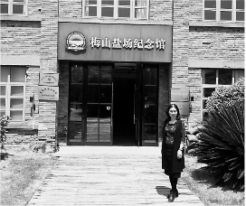 叶华在梅山盐场纪念馆前留影。