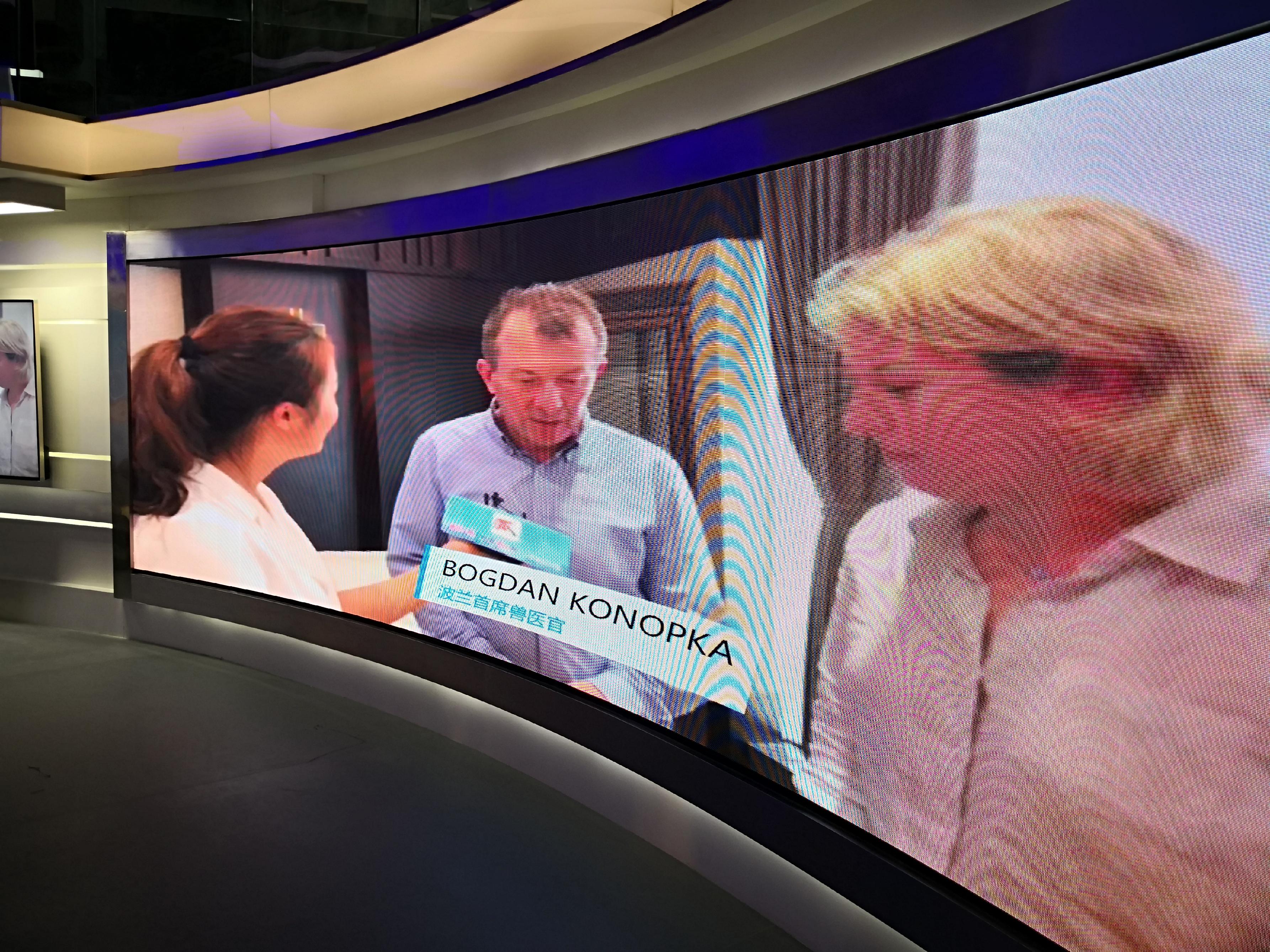 接下来,我们来关注下博览会的布展情况。现在连线现场记者,请看记者对展会外围氛围设计以及8号馆中东欧展区设计团队的采访。