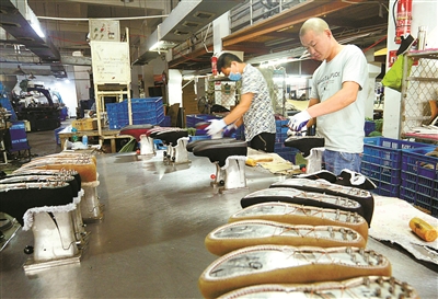 先进的制鞋设备是拖鞋产业转型发展的一大“引擎”。日前,在“千固鞋业”制鞋车间内,工人们正在调试新引进的电脑自动剪线缝纫机。有了这种新装备,每个工人的生产效率能比以前提升20%以上。“从脚踏缝纫机到工业电动缝纫机,再到电脑自动剪线缝纫机,我们的生产设备一直在更新。”岑志伟说,近年来,公司每年都会投入技改资金对生产线进行升级改造。