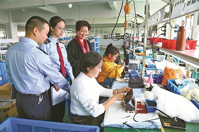 镇海区税务局积极开展“问需问计,服务外贸”活动,走访外贸企业,倾听企业诉求。图为税务人员在宁波伟峰智能科技股份有限公司了解生产经营情况。(董娜邵嘉莹摄)