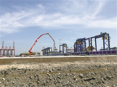 梅山港区7号堆场正在火热建设中,预计8月底完工。(俞永均摄)