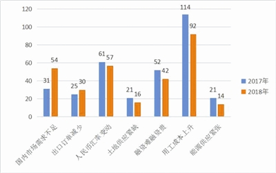 在政策政务环境方面,有72家企业认为税费负担依然是最大的负面因素,占比42.60%。不过随着减税降费政策的实施,这一比例正在下降中,2018年比2017年下降了11%多。