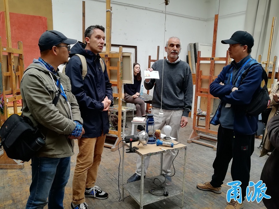(中保艺术家在保加利亚国立美术学院工作室交流)