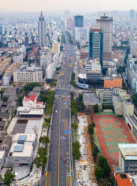 (2017年1月1日下午中山路镇明路口鸟瞰。 周思聪 摄)