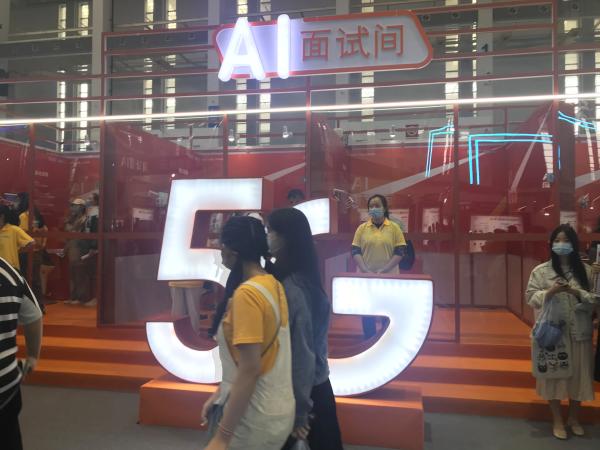 (人才科技周里的AI面试间受到年轻人的欢迎)