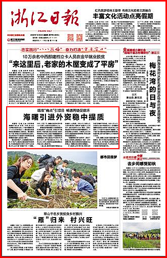 今天,《浙江日报》头版聚焦海曙,报道《瞄准“痛点”引项目 畅通两链促循环 海曙引进外资稳中提质》——