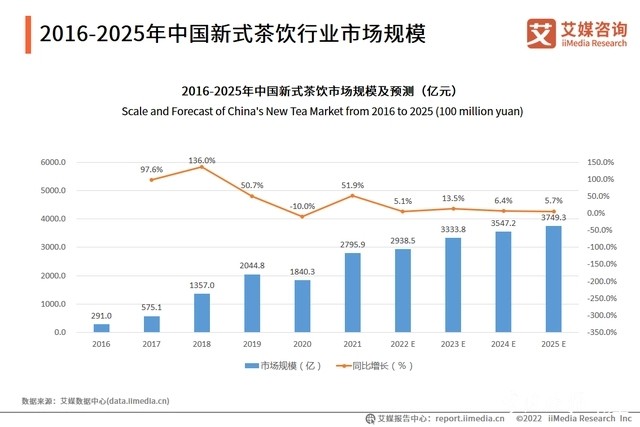 我国新式茶饮市场规模及预测。来源:艾媒资询