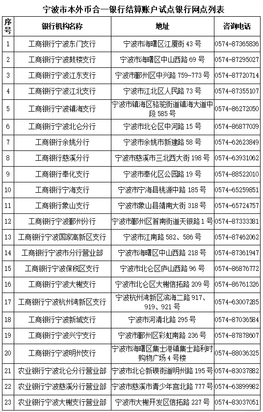 人行宁波市中心支行相关工人人员介绍,试点目前覆盖6家银行机构在宁波的102个网点,今后单位和个人开立、使用本外币银行结算账户更加便利——