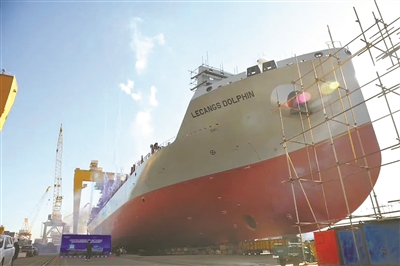 乐歌股份投建的集装箱船正式下水。乐歌股份供图