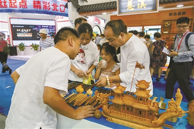 旅游展包罗万象,这是市民在往届旅游展上参观工艺品。