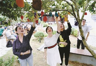 启动仪式上,领导嘉宾在树上挂上锦囊,寓意为非遗助力乡村振兴献上“锦囊妙计”。