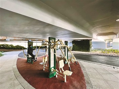 福庆北路桥下健身器材。(唐严 摄)
